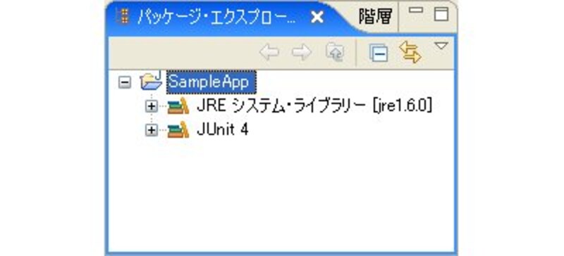 こうしてJUnitのライブラリを組み込んでプロジェクトを作成します。JUnitを組み込むと、パッケージ・エクスプローラーのプロジェクトの中に、JUnitのライブラリが表示されるようになります。