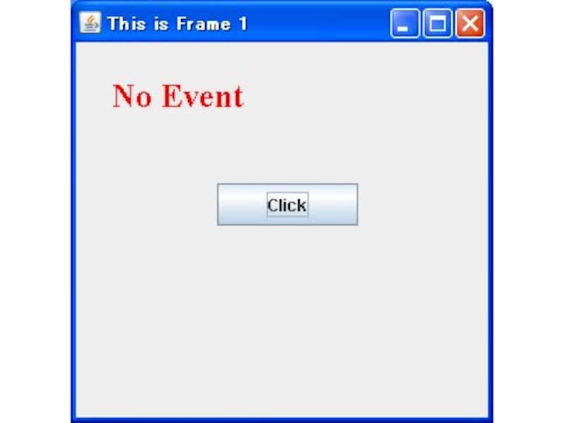 これで、ボタンをクリックするとJLabelのテキストの色が変わるようになります。ちゃんとイベント処理が機能していることがわかりますね。