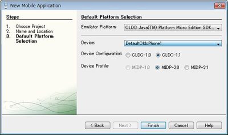 Emulator Platform――プラットフォーム)を選択します。ここでは、「CLDC Java(TM) Platform Miro Edition SDK 3.0」を選びます。