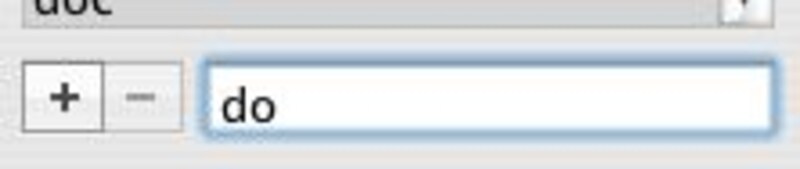 ・「+」「ー」という押せないボタンすぐ右側の入力フィールドに「do」と入力します。すると「+」ボタンが押せるようになるので押すと、上のリストに「do」が追加されます。