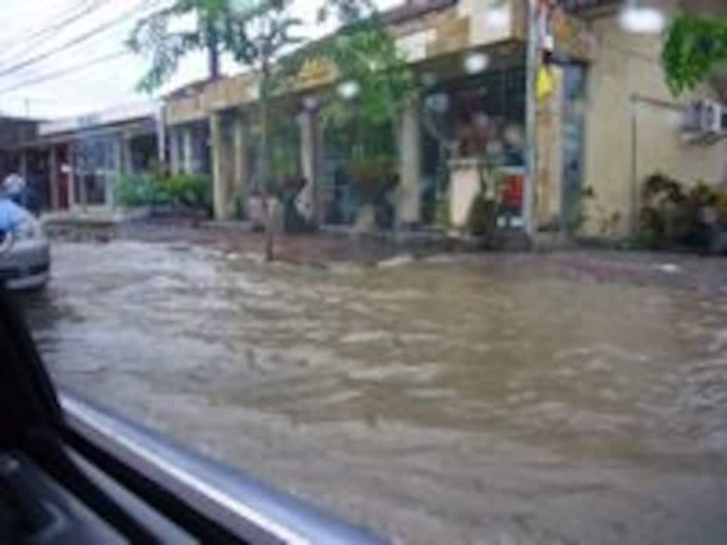 | 雨季に運が悪いと、こんな状態に……。タクシーの中から見た風景です |