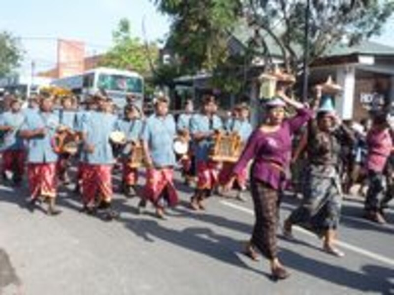 | お祭りの列は車よりも優先。車は通行禁止に |