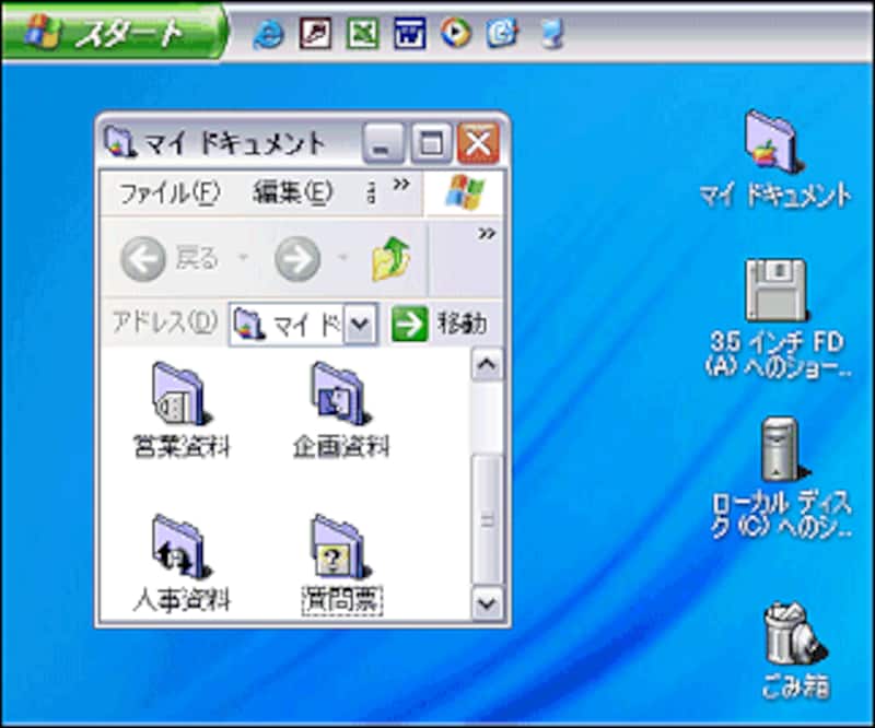 [設定反映]ボタンをクリックすると、アイコンが変更されます。また、[標準に戻す]ボタンをクリックすると、最初の設定に戻せます。なお、[マイコンピュータ] や [マイドキュメント]