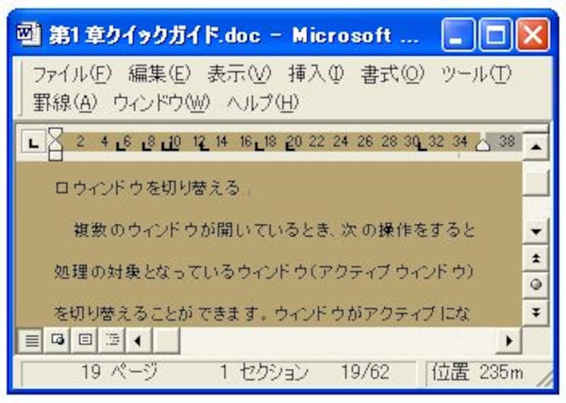 最後に、[OK]ボタンをクリックするとダイアログボックスが閉じます。以上の設定で、通常のウィンドウは、もちろん、Wordなどのアプリケーションウィンドウの色も変更できます。