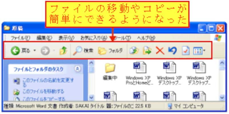 WindowsXP の標準ツールバーは、最低限のボタンしか配置されていませんので、ファイル操作などの機能が限定されてしまいとても不便です。