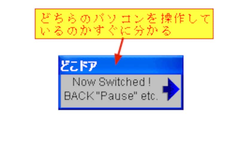 デスクトップ型とノート型の2台のパソコンをお持ちの方には、特に「どこドア」はお勧めだ。デスクトップパソコンの扱いやすいキーボードとマウスで、快適にノートパソコンを操作できる。