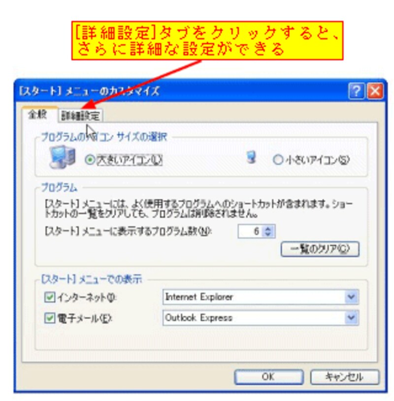 [カスタマイズ]ボタンをクリックすると、次の[[スタート]メニューのカスタマイズ]ダイアログボックスが表示されます。