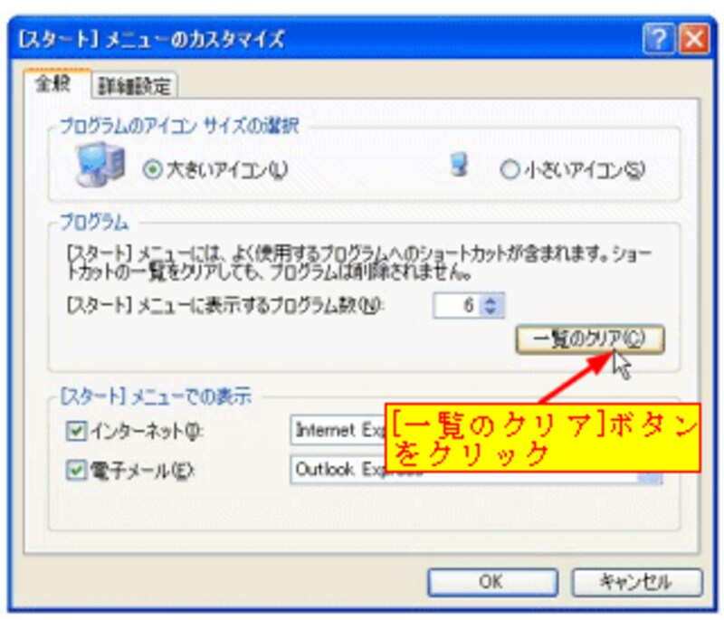 [スタート]ボタンを右クリック→[プロパティ]→[カスタマイズ]ボタン→[一覧のクリア]ボタンをクリックします。