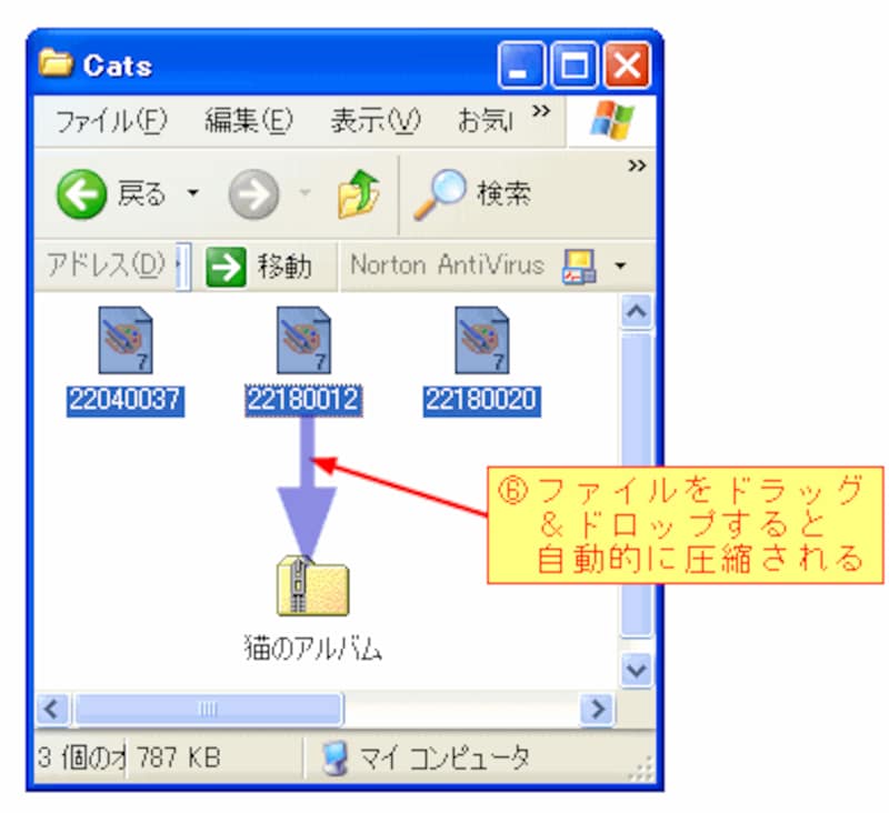 ファイルを圧縮するときは、圧縮フォルダにドラッグ&ドロップすると自動的に圧縮されます。