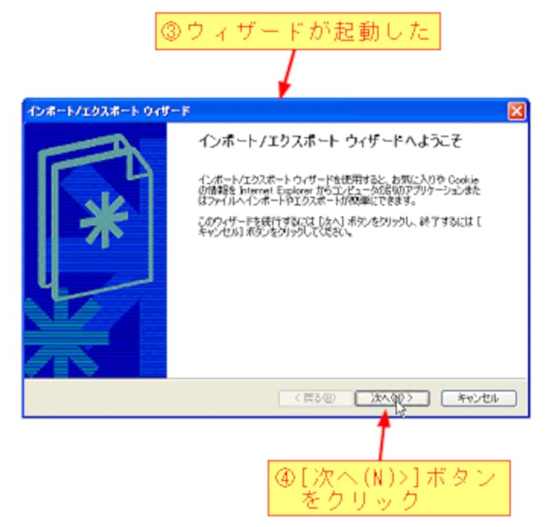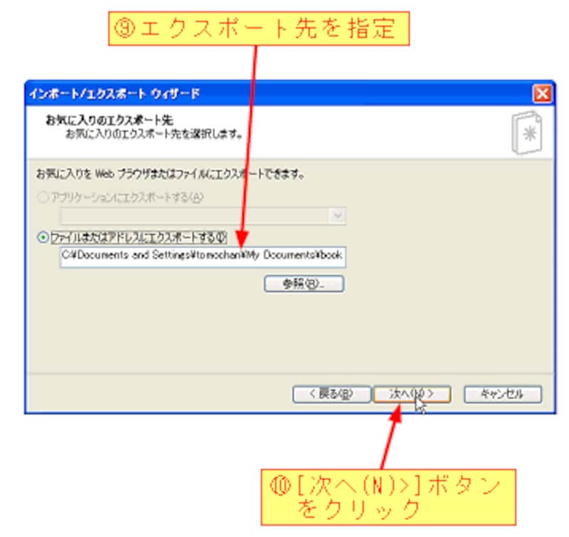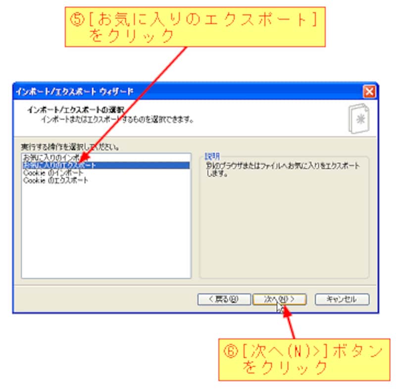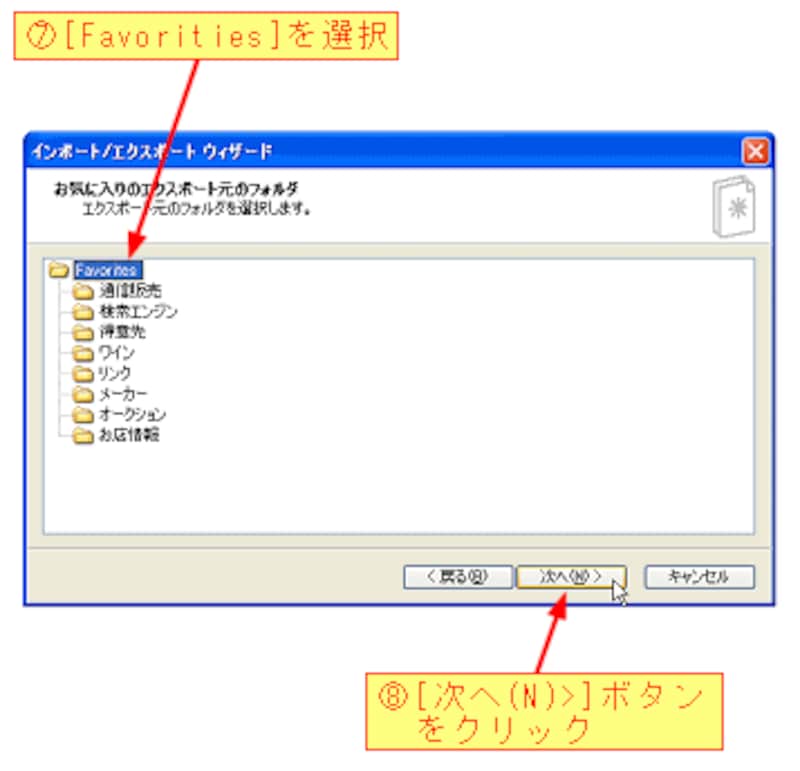 3)[お気に入りのエクスポート]をクリックし後、[次へ(N)>]