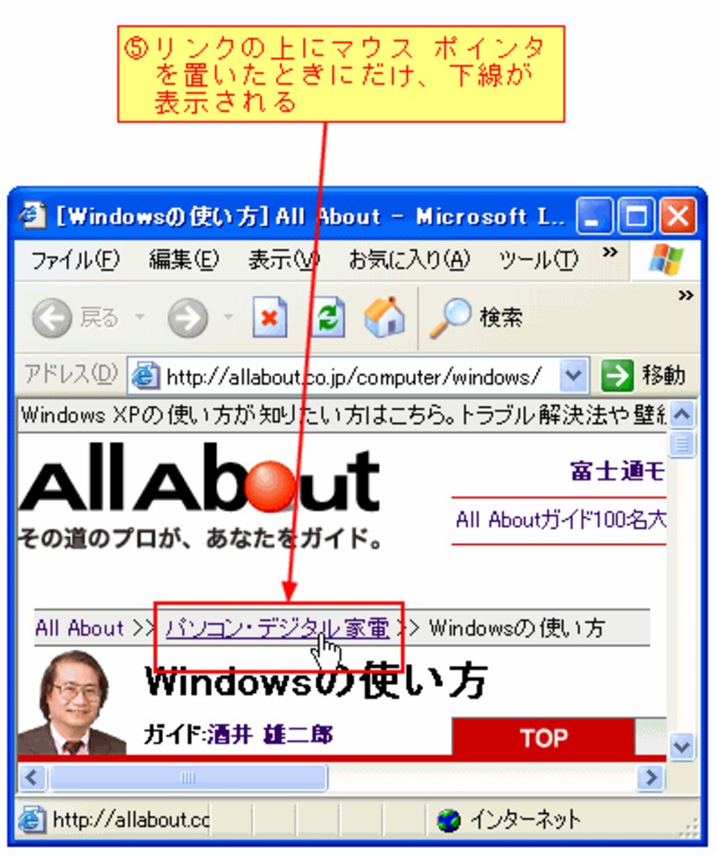 ホームページを見ているとき、リンク先の下線が気にかかります。この設定をすると、リンクの上にマウス