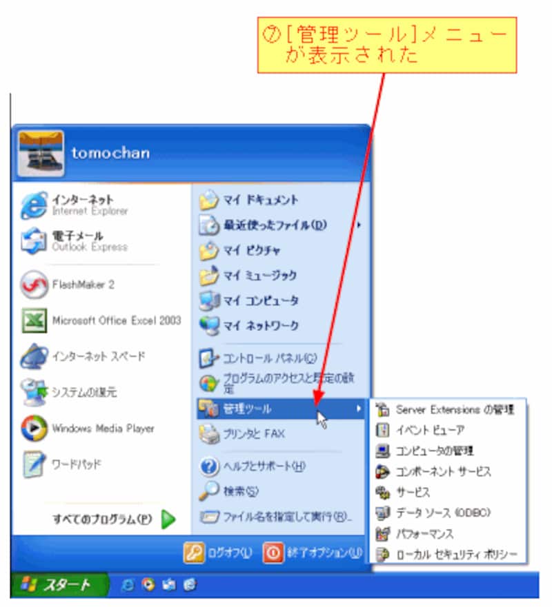 XPには、「イベントビューア」、「コンピュータの管理」、「パフォーマンス」などの各種管理ツールが用意されています。しかし、これらの管理ツールは、既定の設定では[スタート]メニューに表示されません。