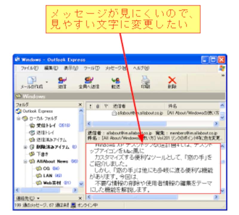 メッセージの文字が読みにくいと感じたら、フォントとサイズを変更しましょう。フォントを[MS