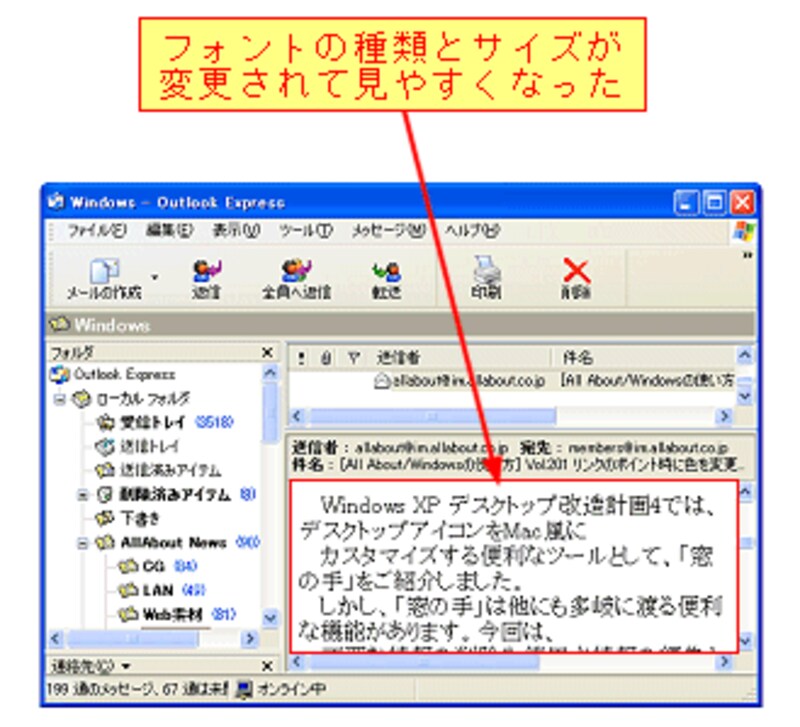 なお、サイズだけを大きくしたい場合は、[表示]メニュー→[文字のサイズ]でも変更できます。