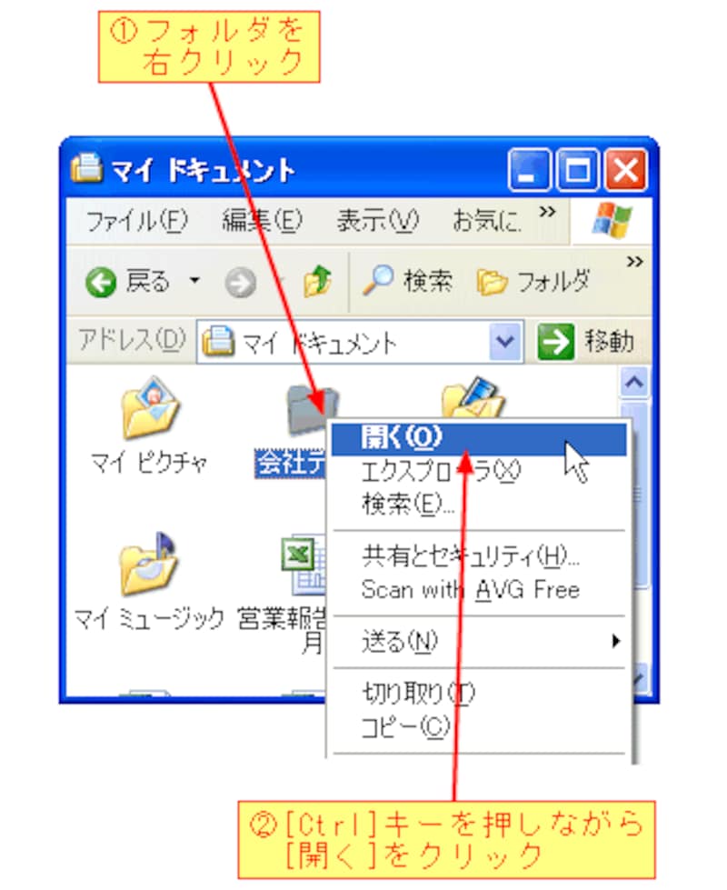フォルダを[Ctrl]キーを押しながらダブルクリックすると、次のように別ウィンドウでフォルダが開きます。