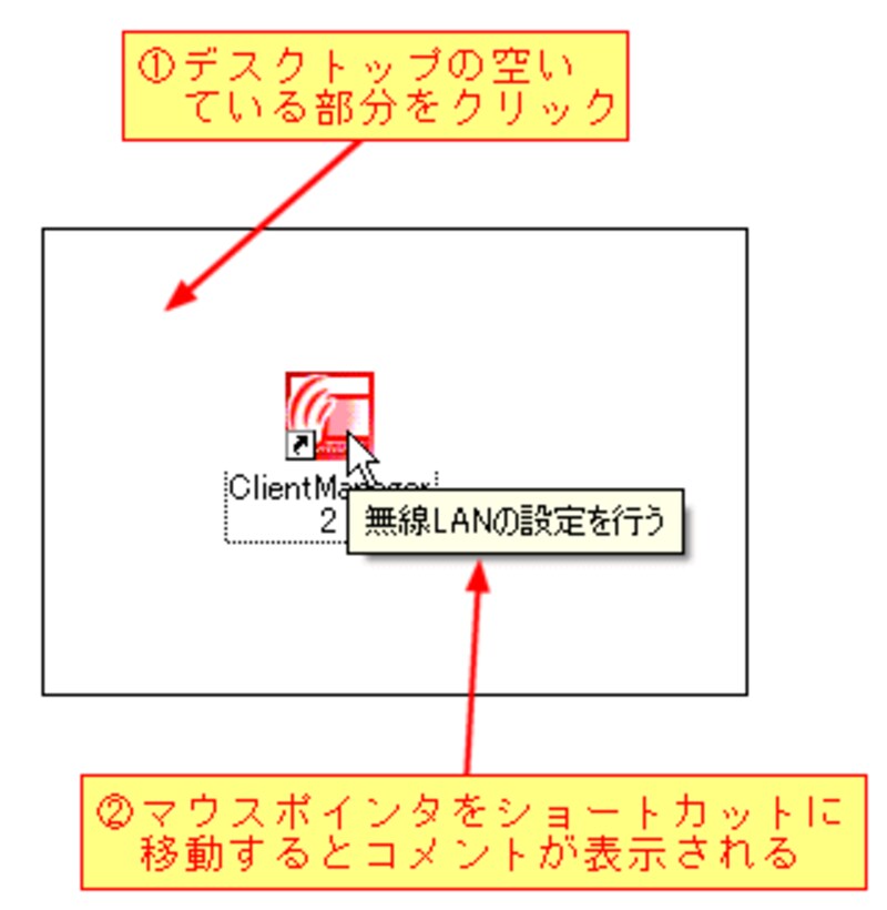 ショートカットに作成した目的や機能がすぐに分かるように、コメントを追加します。コメントは、マウスでショートカットをポイントすると自動的に表示されます。