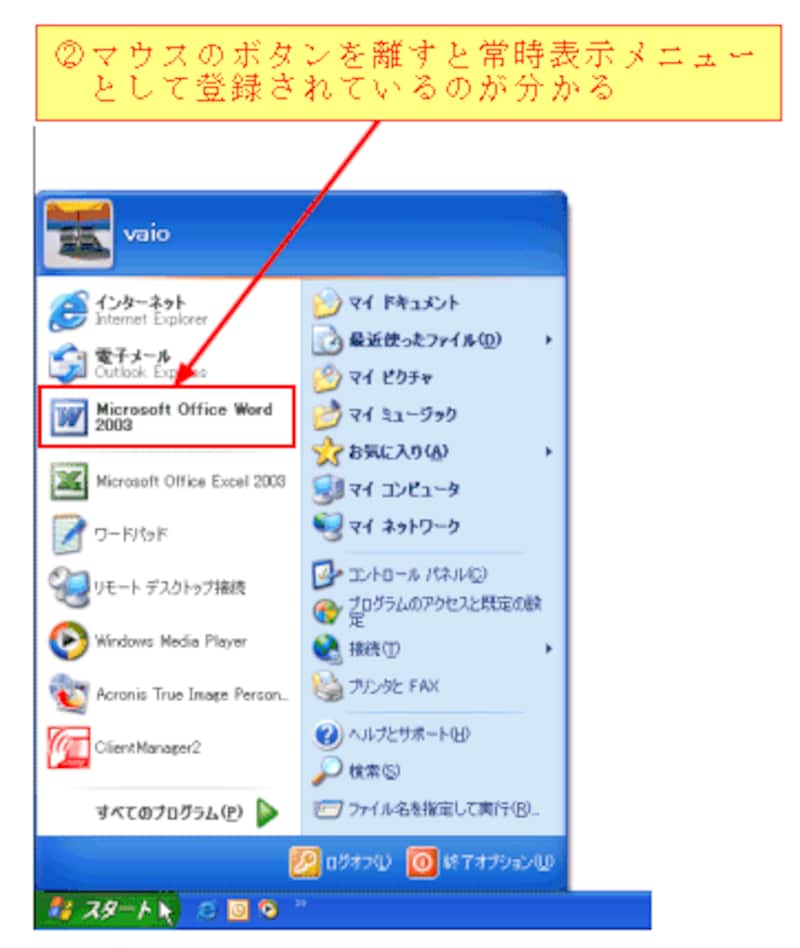 2)マウスのボタンを離すと常時表示メニューとして登録されて