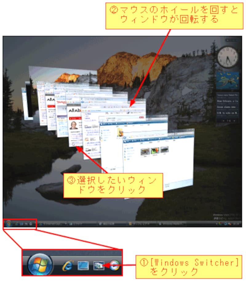 Vista Aeroの極め付きは何と言ってもWindowsフリップ 3D