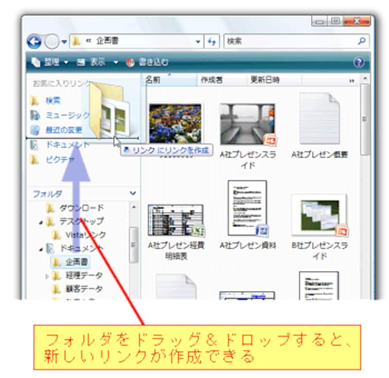 ナビゲーションペインは、[お気に入りリンク]と[フォルダ]から構成される。[お気に入りリンク]には、よく使うフォルダを指定できる。