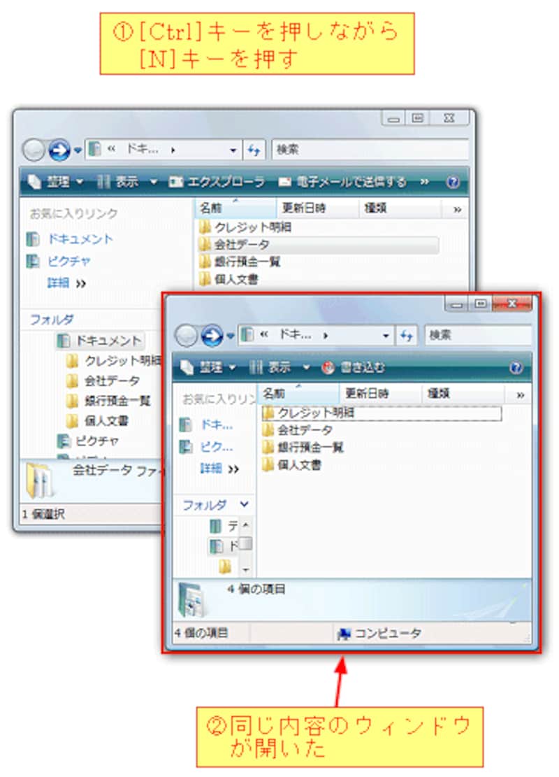 なお、現在表示されているウィンドウと同じものをもう1つ開きたい場合は、[Ctrl]キーを押しながら[N]キーを押します。