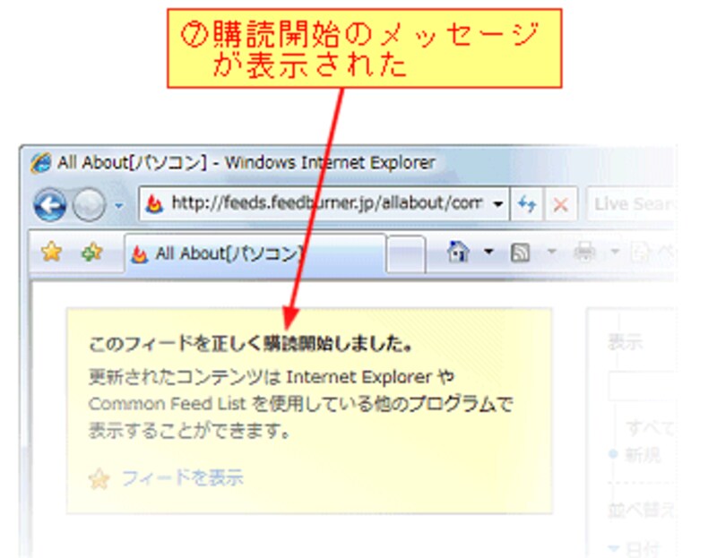 Explorer7では、フィードを購読する機能が追加されました。ただし、フィードを参照するためには、そのWebサイトがフィードを配信している必要があります。