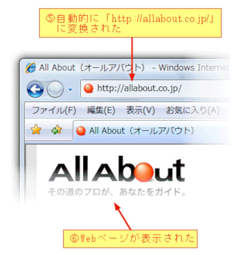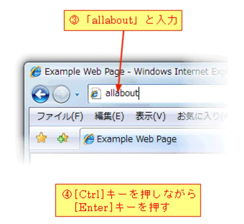 [Ctrl]キーを押しながら[Enter]キーを押すと、「allabout」が自動的に「http ://allabout.co.jp/」に変換されます。