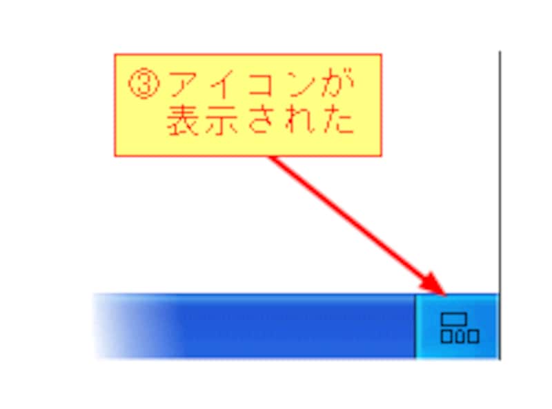 [OK]ボタンをクリックをクリックすると、タスクバーの通知領域に以下のようなアイコンが表示されます。