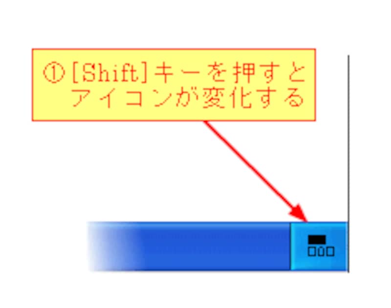 このアイコンはキーが押されている状態を表しています。試しに[Shift]キーを押してください。すると、以下の様にアイコンが変化します。