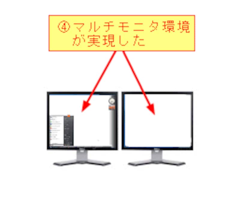 続いて、Windowsでプライマリとして使用するディスプレイを選択する。プライマリ とは、ログオンやタスクバーが表示される画面のことをいう。ここでは、Dell 1900FPをプライマリに設定した。