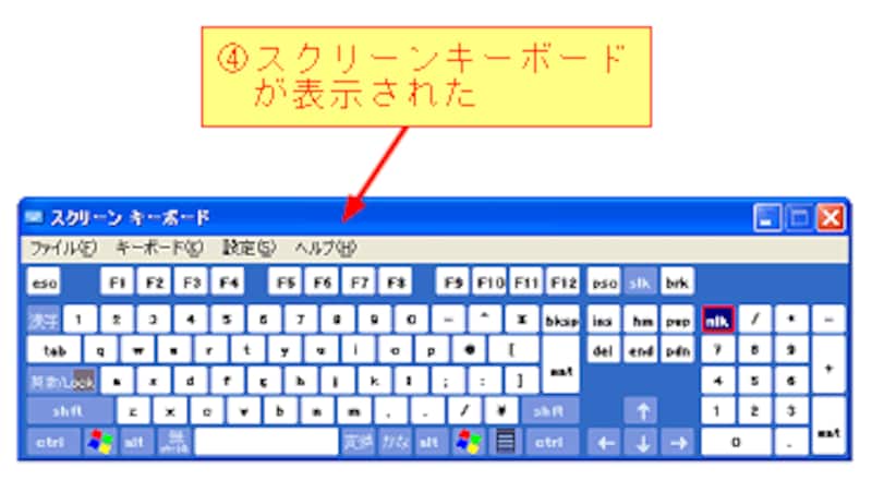 [開始]ボタンをクリックすると、以下のようなスクリーンキーボードが表示されます。
