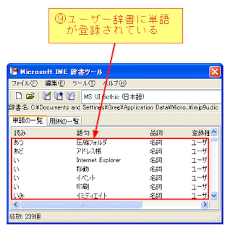 [終了]ボタンをクリックすると、新しいユーザー辞書に単語が登録されていることが確認できます。