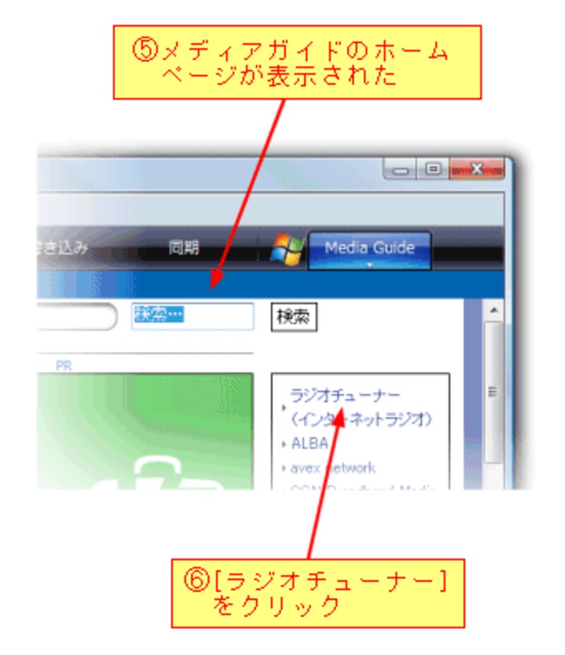 [Media Guide]をクリックすると、メディアガイドのホームページが表示されますので、右欄の一番上にある[ラジオチューナー]をクリックします。