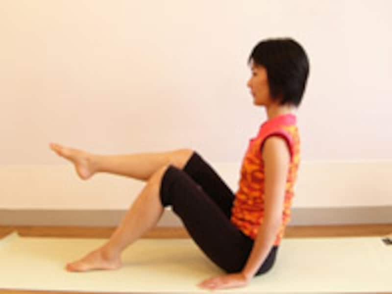 ひざが曲がらないよう、両脚をしっかりと伸ばしましょう。