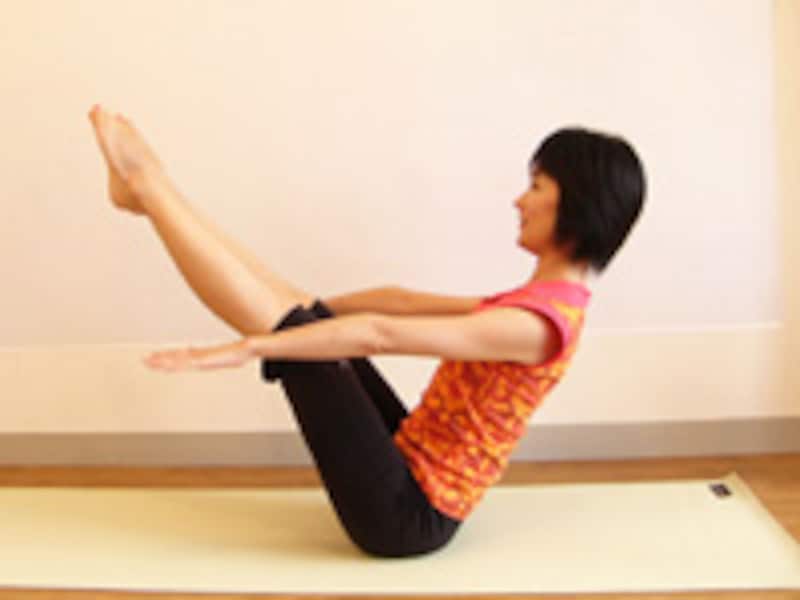 初心者のポーズに慣れ、下腹部を上手に使えるようになったら、上級編にチャレンジ! Vのポーズは、スタジオでも多用される人気のポーズです。【V字のポーズ・上級編】