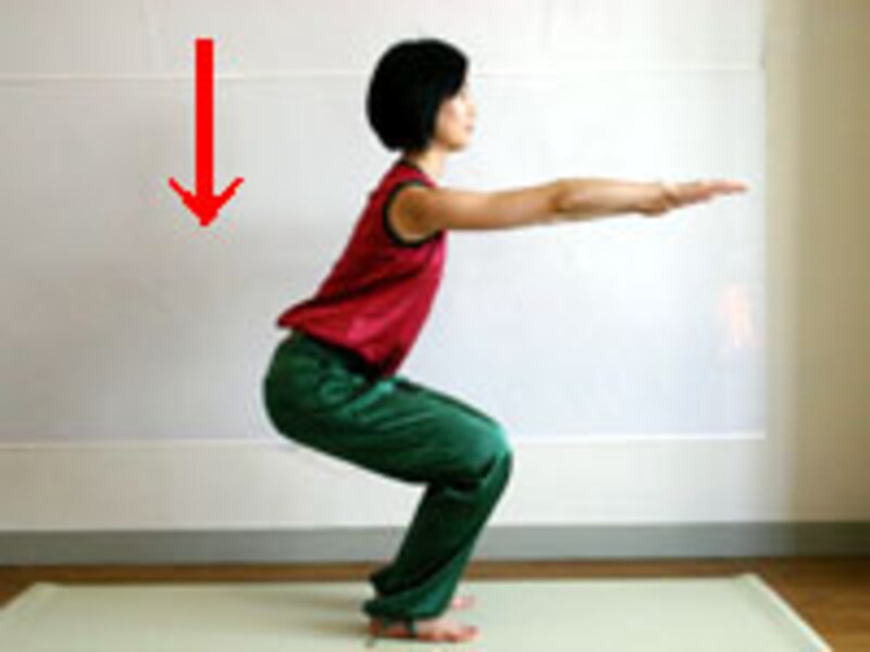 おへそと背中を引き寄せ、バランスを取り続けます。この姿勢で5呼吸繰り返す。