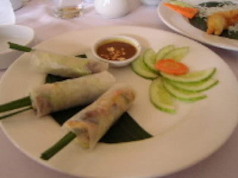 もっとも、ベトナムはどこの店に入っても、それほどハズレがありません。日本人の口に合う料理が多いんですね。ただ、香菜(パクチー)が嫌いな人はちょっと厳しいかもしれませんね。これは生春巻きですけど、中にたくさん入っています。料理によってはたくさん入っていますので。でも、注文するときに香菜(パクチー)は入れないでくださいと言えば大丈夫ですよ。