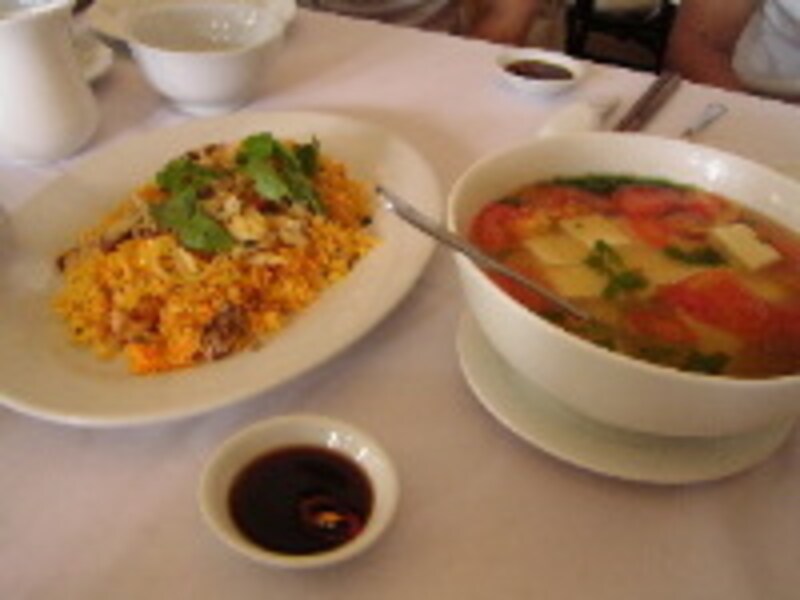 締めはチャーハンとトマトのスープにしました。今回はアラカルトにしましたけど、ランチメニューは料理が何品かにご飯とスープ、デザートなんかもついて500円ぐらいで食べられます。